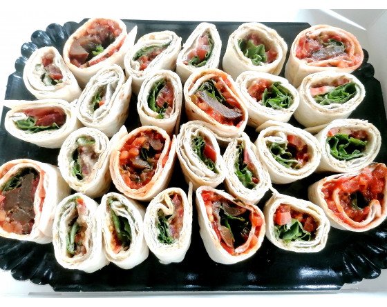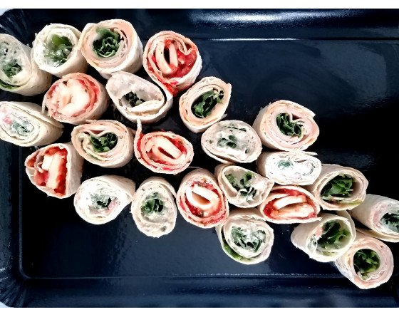 Sur Commande 1 semaine à l'avance ! Assortiment de 24 mini-wrap, composés selon vos goûts : végétariens, saumon fumé, .......