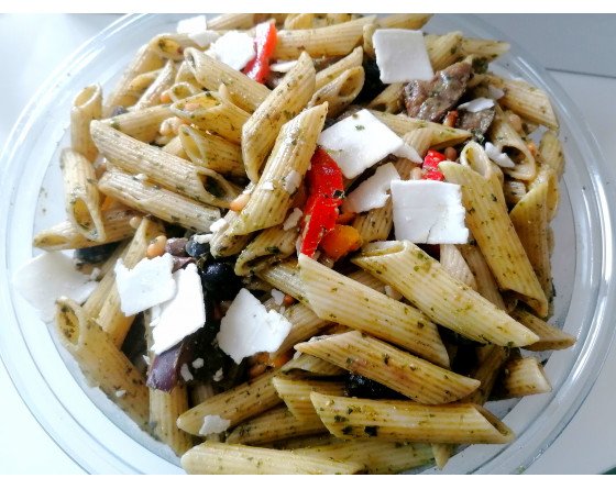 Sur Commande 1 semaine à l'avance ! L'Italienne est composée de Penne, de Pesto Maison, de légumes grillés et de pignons ! Elle est pour 8 personnes !